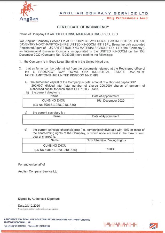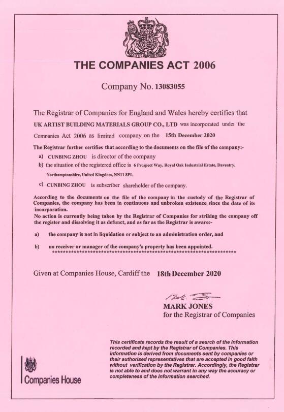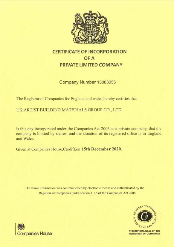certificate of incorporation of a private limited company